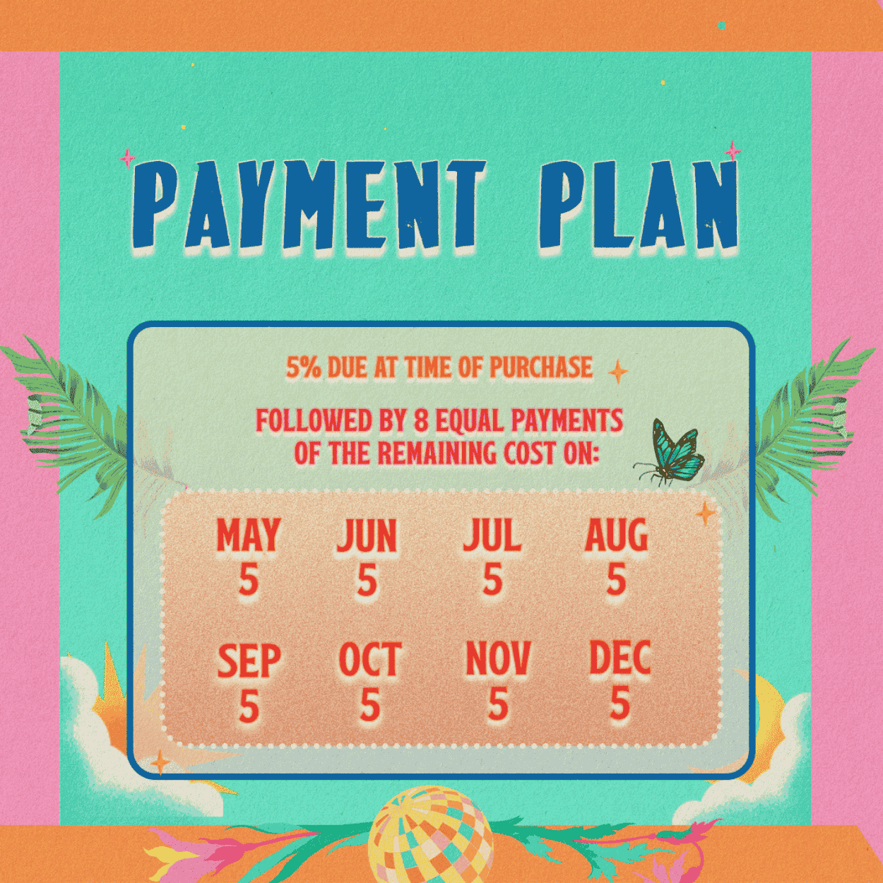 Yes – you can break up the cost of any Brandi Carlile's Girls Just Wanna Weekend package by taking advantage of our payment plan at the time of purchase! The 5% deposit is based on your total order cost. The payment plan option must be selected during the checkout process and cannot be applied after an order has been submitted. There is a $50 fee to join the payment plan.